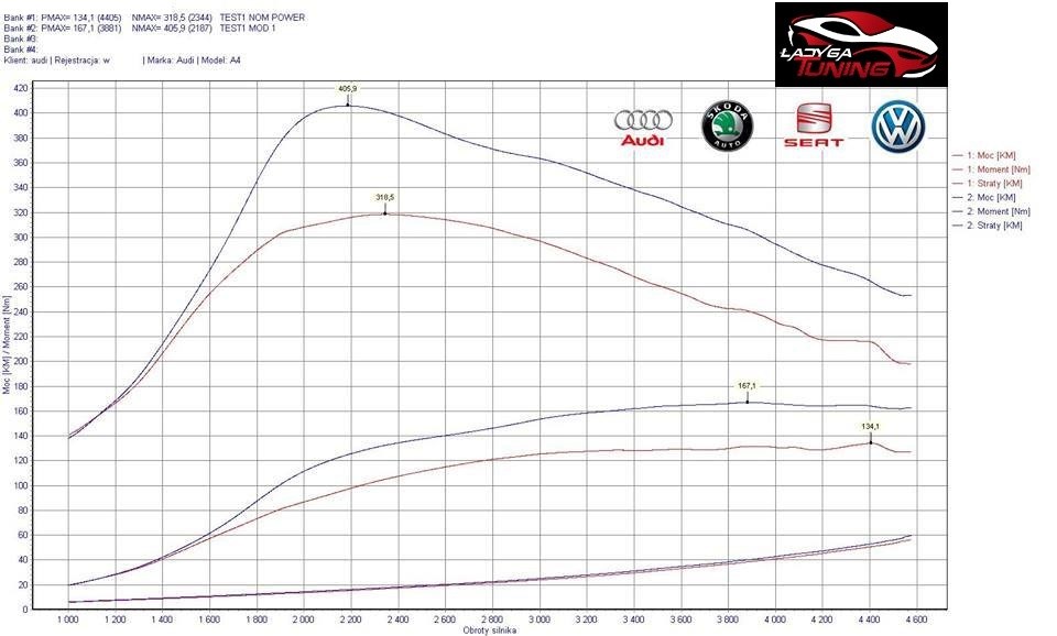 Chip tuning Audi 1.8 TFSI CDHA 120 Km 88 KW Ladyga hamownia wykres stage1
