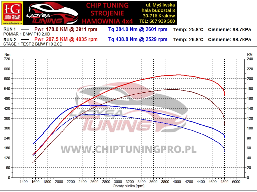 BMW 520d 163 2.0d chip tuning Kraków Ładyga Hamownia