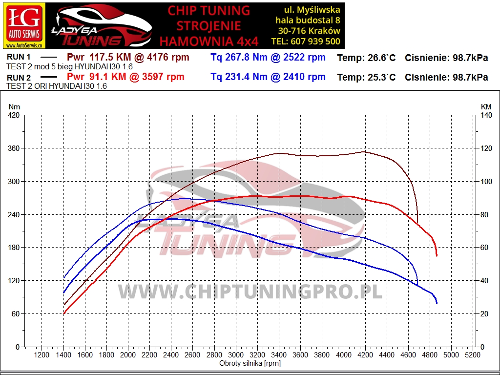 chip tuning hyundai i40 1.6 crdi 136 manual ladyga stage 1 hamownia wykres dyno krakow